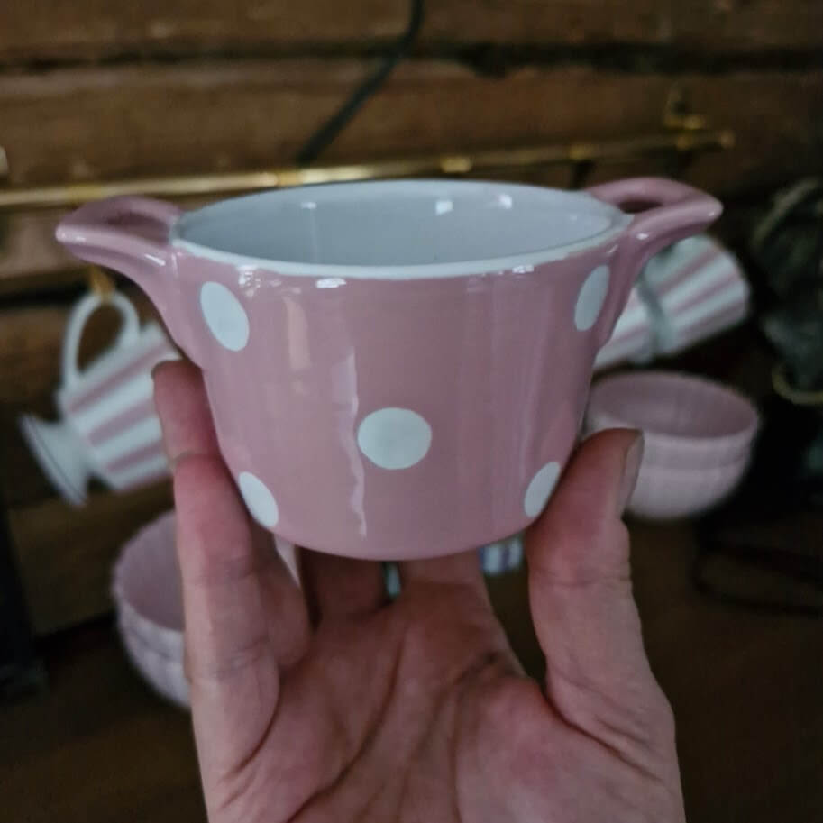 Pikkukulho Polka dot vaaleanpunainen ja muita kivoja sisustustuotteita Hannahuuhaan puodista